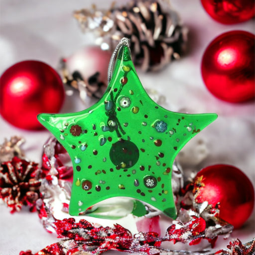De ster wijst je de weg. Deze handgemaakte Murano glas kerstster is een symbool van licht en feestelijke warmte. De elegante groene ster, versierd ...