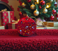 Kerstmis - Muranoglas palla di Natale rossa piatta con fiori