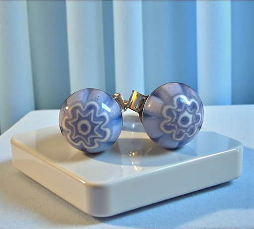 Alle gegevens bekijkenMurano glas bead - vortici blu, rosa e grigi