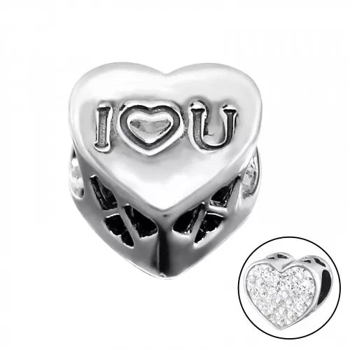 Een prachtig, aan de zijkant opengewerkt hart met 'I (hart) you' aan de ene kant en maar liefst 27 zirkonia's aan de andere kant. een subtiel liefd...