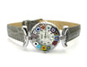 • Material: Artificial leather strap, case made of chrome metal nickel free, as required by regulation 93/27/CEE. The dial is framed by Millefiori Murano glass.